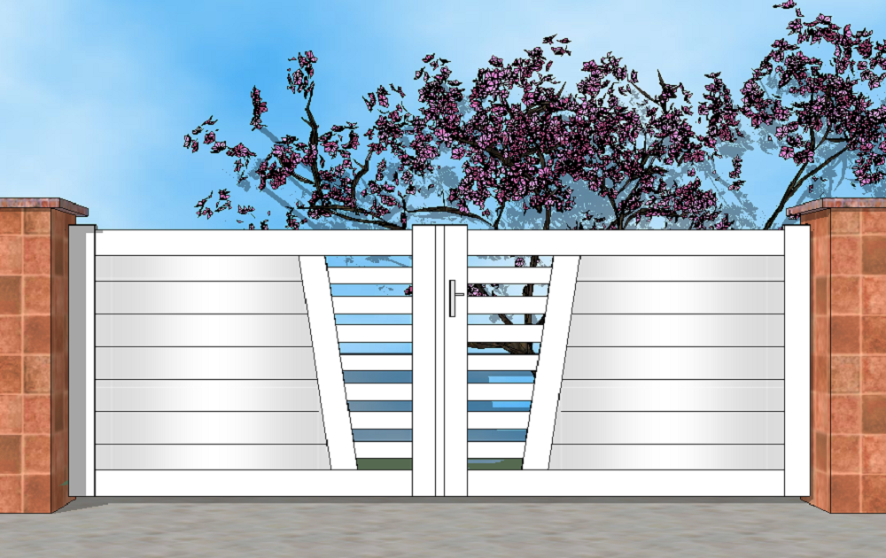 Pour portail battant motorisé, cadre intégré : ajout obligatoire d'une traverse intermédiaire droite.